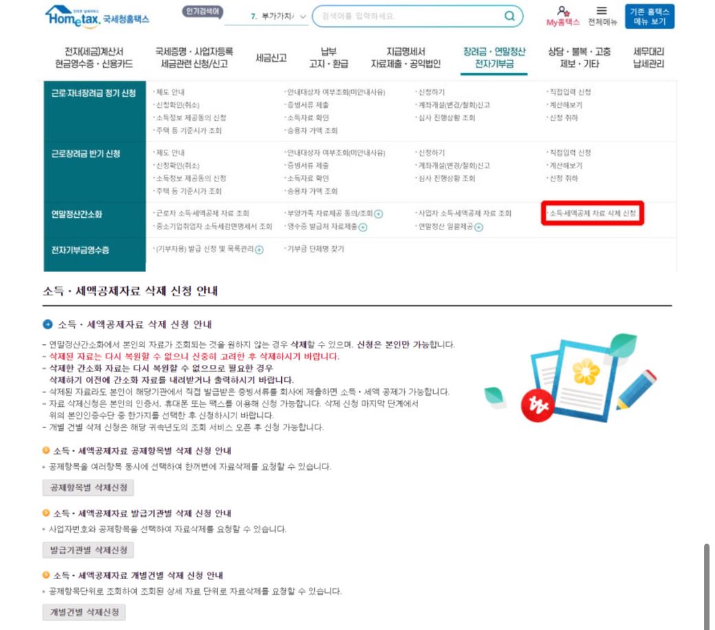 자녀입니다. 세액공제자료 특정 것등 홈택스