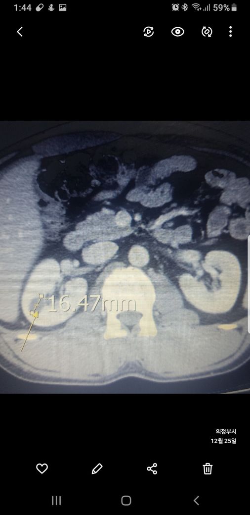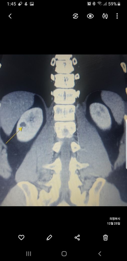우측신장에 작년에는 1.7cm 물혹이 올해는 같은곳에 1.2cm 출혈성낭종이라는데