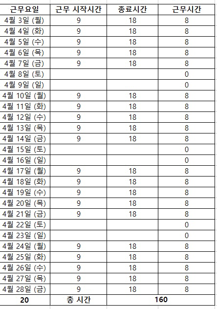 그리고 매주 개근을 하였으므로 주휴수당도 지급되어야 합니다. 감사합니다.