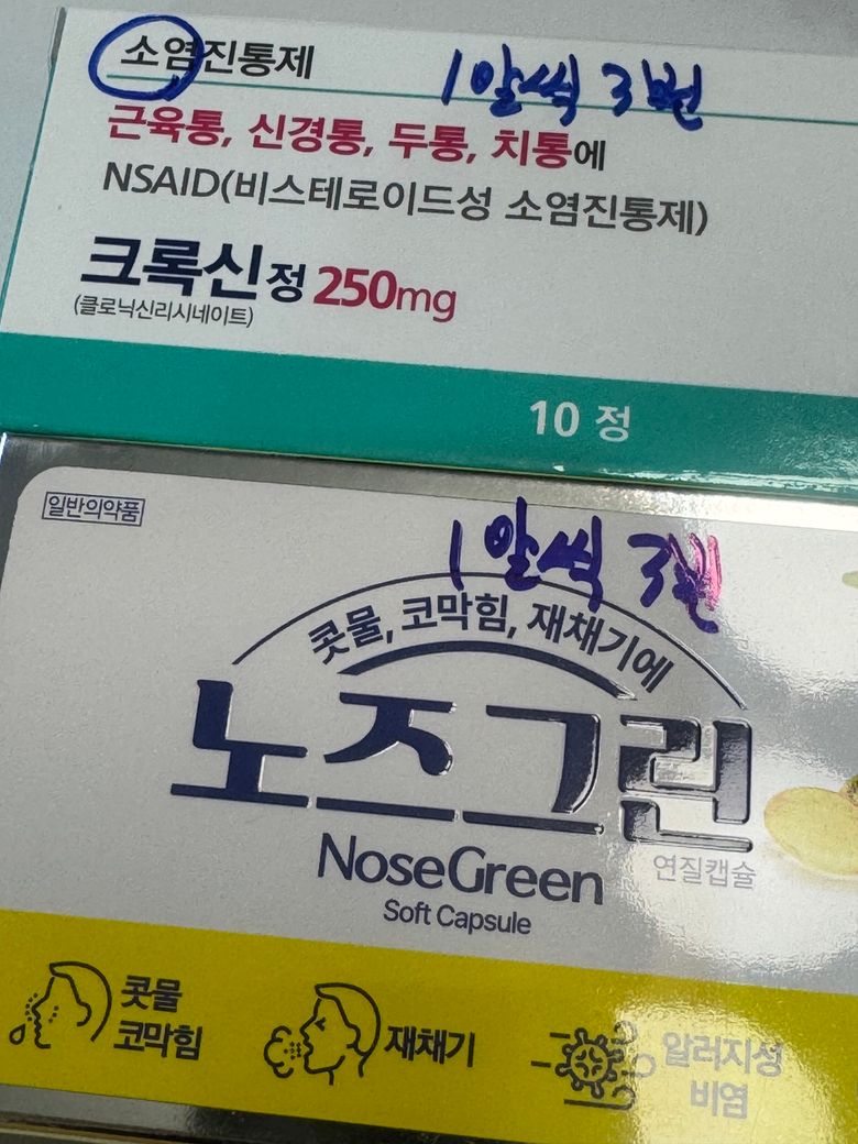 코가 막히면서 두통과 귀 통증으로 인해 약국에서 이 약들을 사왔습니다.