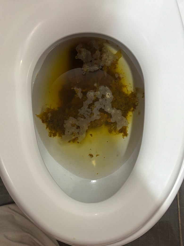 올려주신 사진만으로 진단 할 순 없으나 자극적이거나 기름진 음식의 섭취 시 소화 장애로 인해 무르거나 풀어지는 변을 볼 수 있습니다.