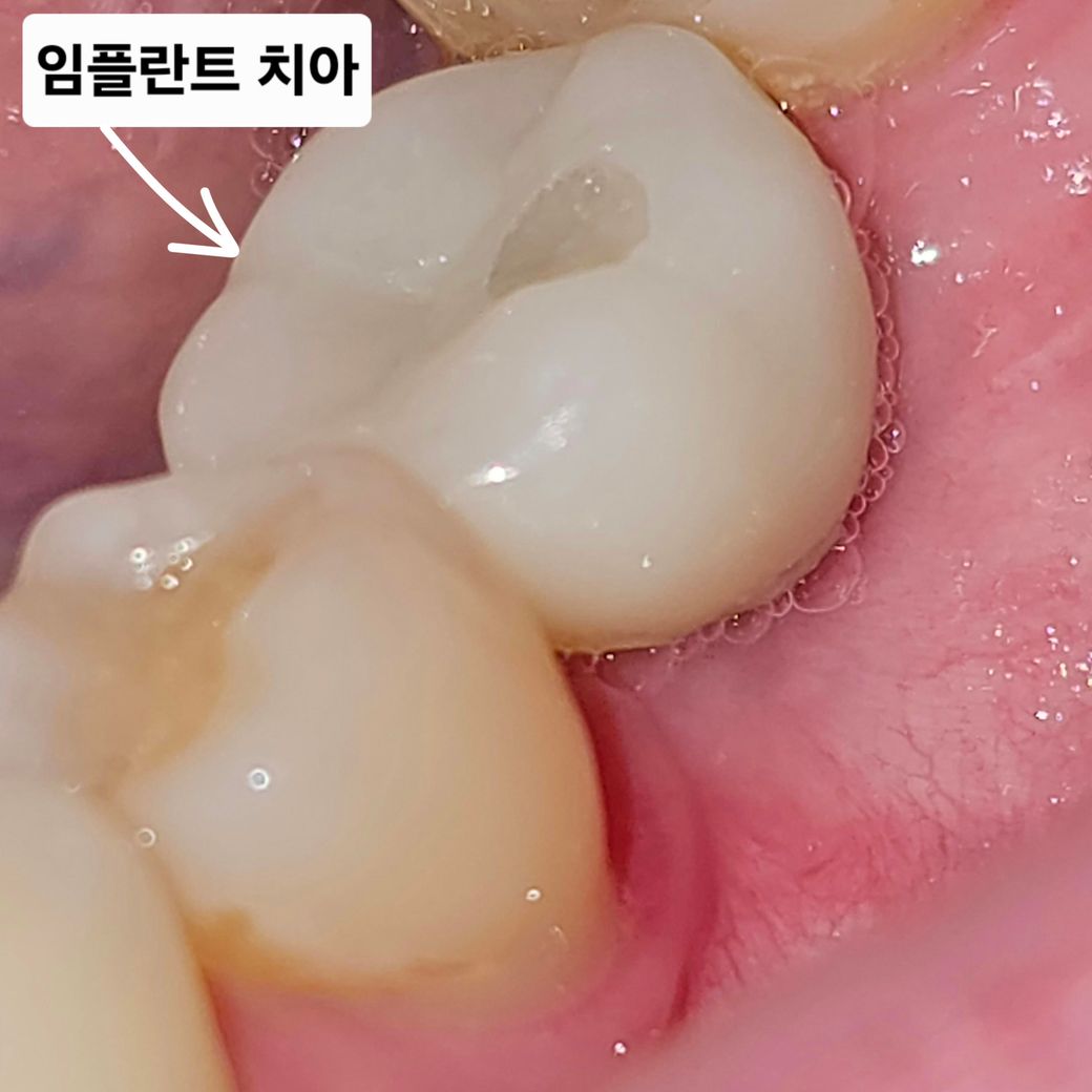 임플란트가 가리고 있어서 육안으로 보철물과 잇몸의 경계부위가 보이지도 않아요..