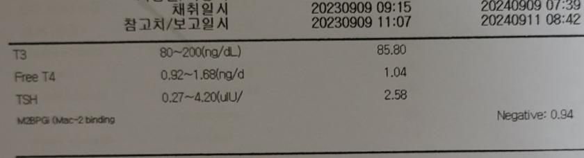 다만 갑상선 기능검사 수치(TSH, Free T4, T3 등) 가 정상 범위 ‘근처’에 있거나, 개인 기준에선 낮거나 높을 수도 있습니다.