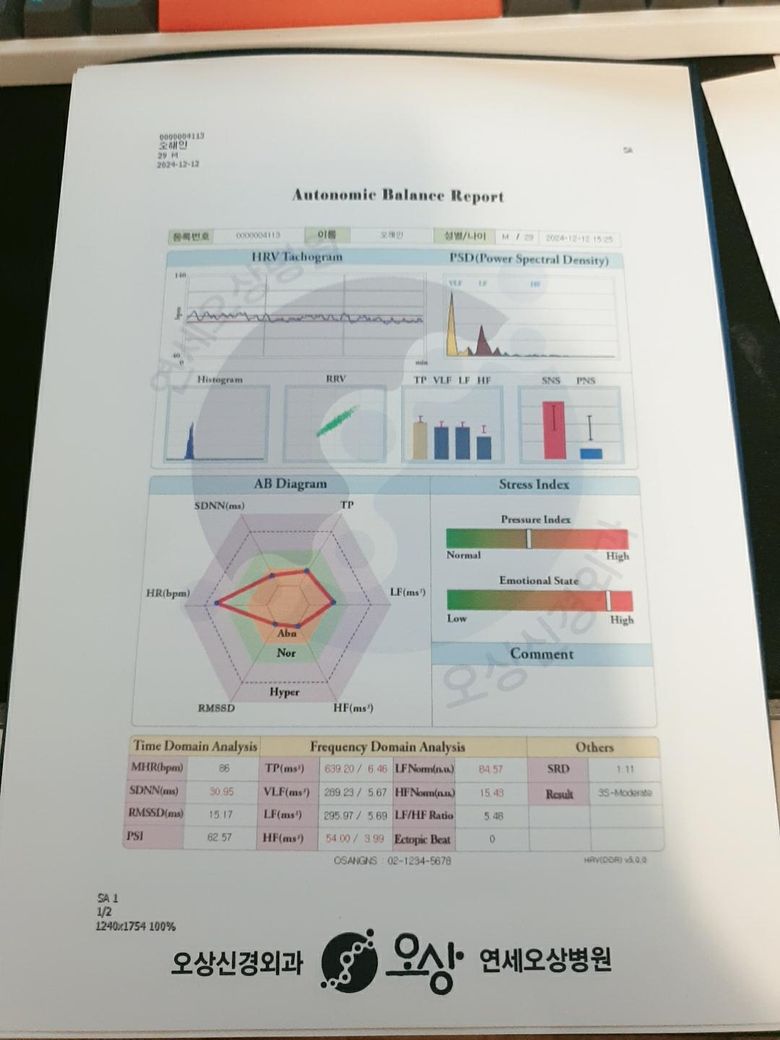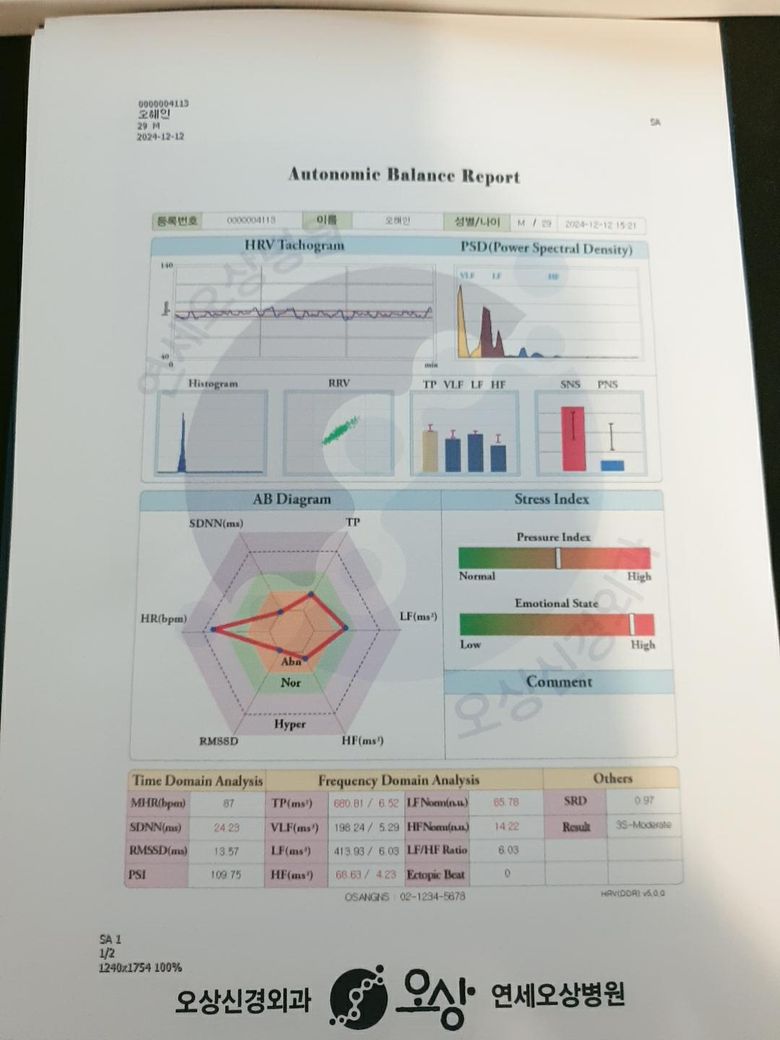 자율신경계 검사를 받았는데 영어로 써진것이 무엇인지.. 수치가 높아서 안 좋은건지 낮아서 안 좋은건지 모르겠습니다 ㅜㅜ