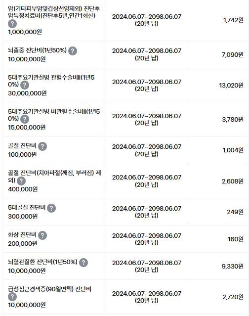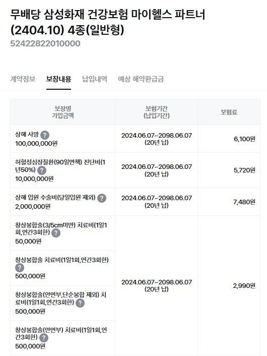 비교적 폭 넓은 보장으로 가입이 되어 있으시군요.