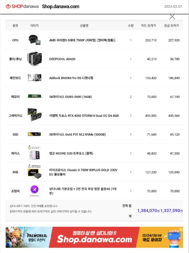 SSD 하드와 RAM 메모리, CPU, 메인보드, 쿨러 는 꼭 좋은 녀석으로 장착하시는 것을 추천합니다.