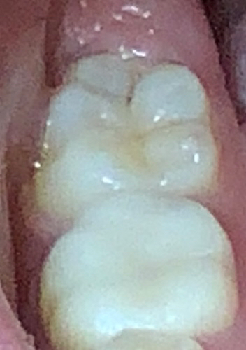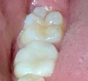 까맣게 보이기는 하는데 다른 검은게 끼인것인지, 충치인지 확실하지는 않네요.어쩌면 충치가 맞는데 너무 작거나, 멈춘 충치라서 아직 치료시기가 아니라고 생각하셨을 수도 있고요.