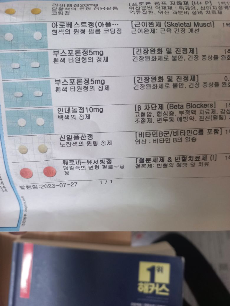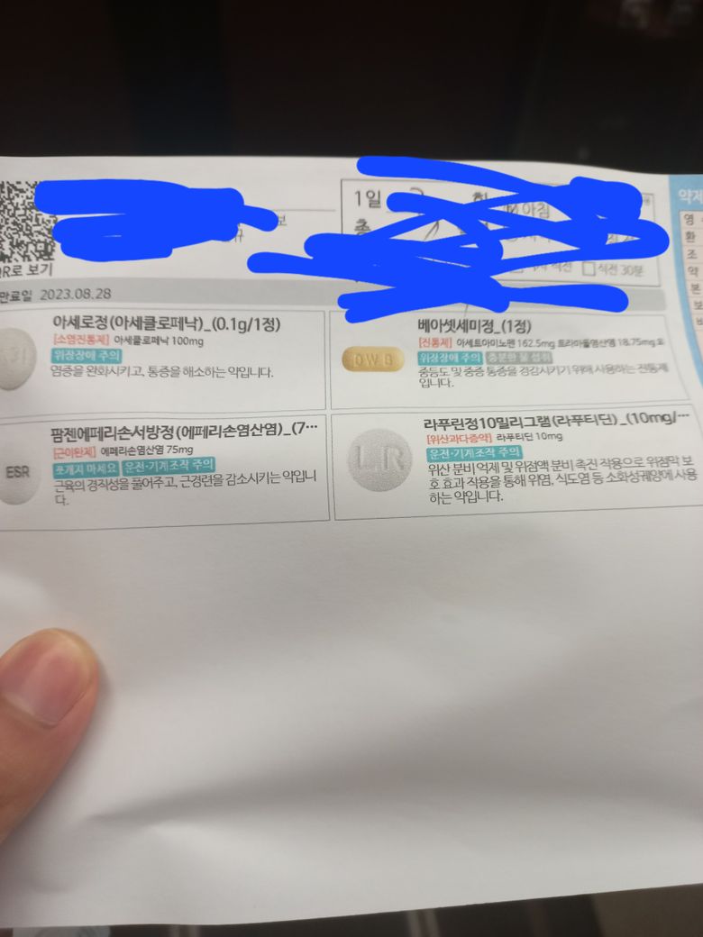 아래 사진에서 근이완제 및 위장약은 안 드셔도 되겠습니다.