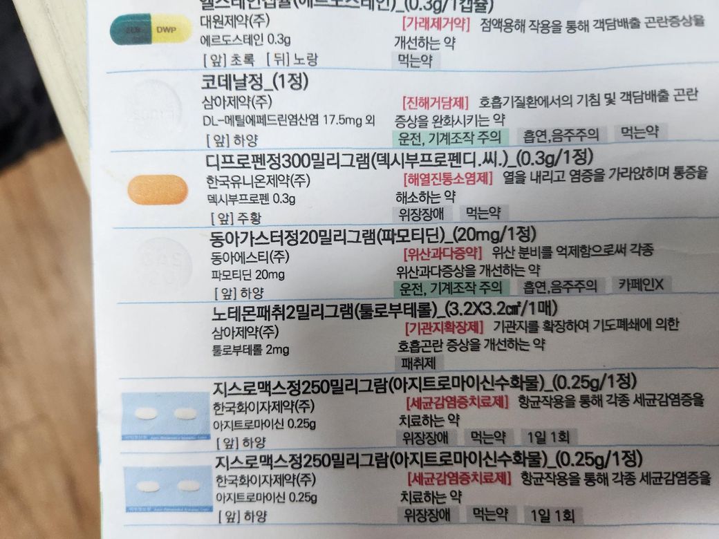 그나마 가능성이 있는 약은 코데날정일텐데 일단 이 약을 빼고 복용해보세요. 그래도 호전이 되지 않고 지속적으로 나타난다면 병원에 가보시기 바랍니다.
