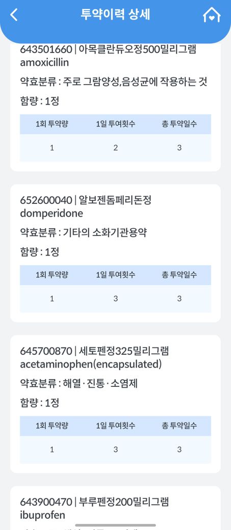 위에 사진이 토요일에 처방받아서 월요일 아침까지 먹은 약이고