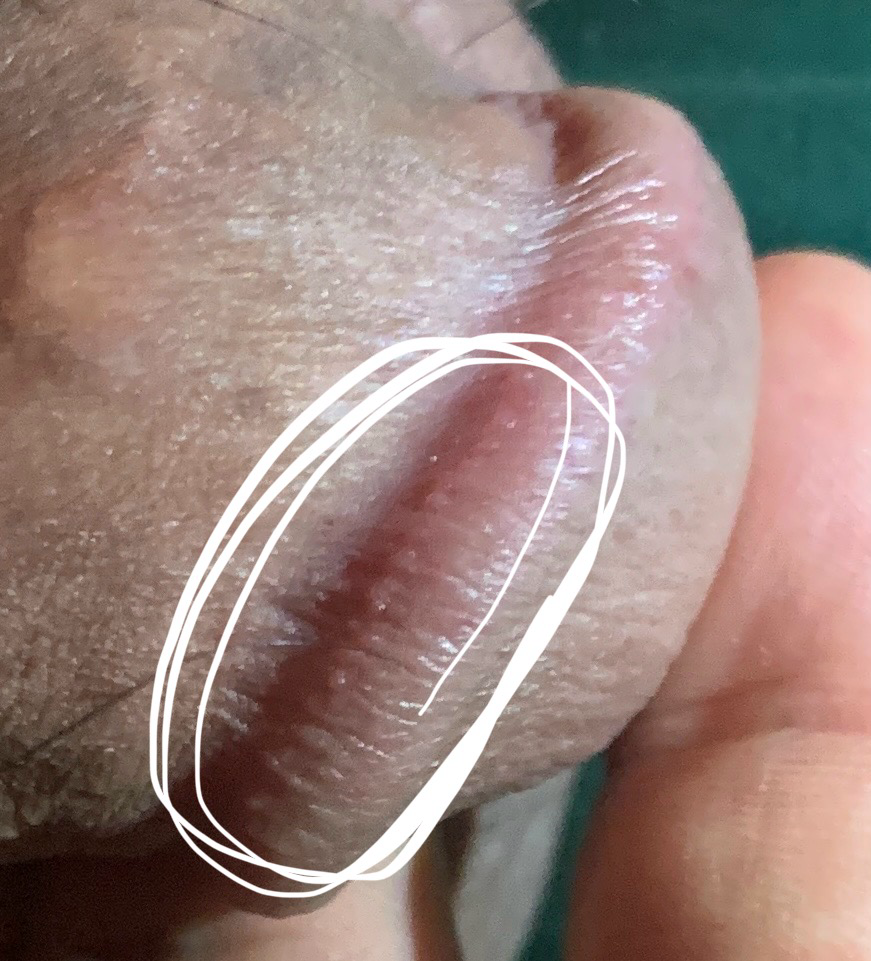 진주양구진과 같은 양성병변으로 추정됩니다. 가까운 비뇨의학과에서 확인해보실 수 있겠으며, 이 질환의 경우에는 특별히 치료가 필요하지는 않습니다.