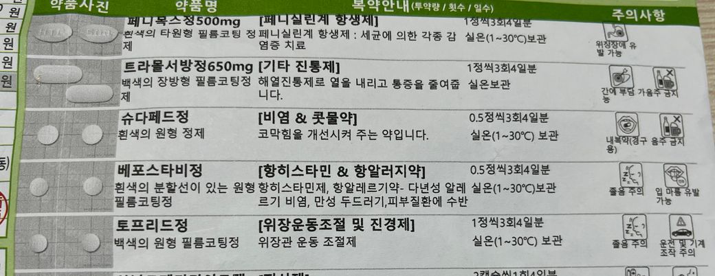 우선 위에 처방약과 아래 처방약에는 항생제와 항히스타민제가 중복으로 처방되어 있습니다.
