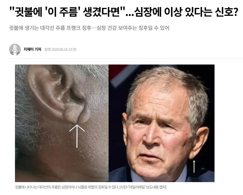 저랑 같이 일하시는분이신데 어제 병원 진료보시고 그의사샘이 양쪽 귓볼에 대각선으로 주름이 있다고 진료를 받아보라고 했는데 원인이 뭐며 무슨과로가서 진료받으면되나요?