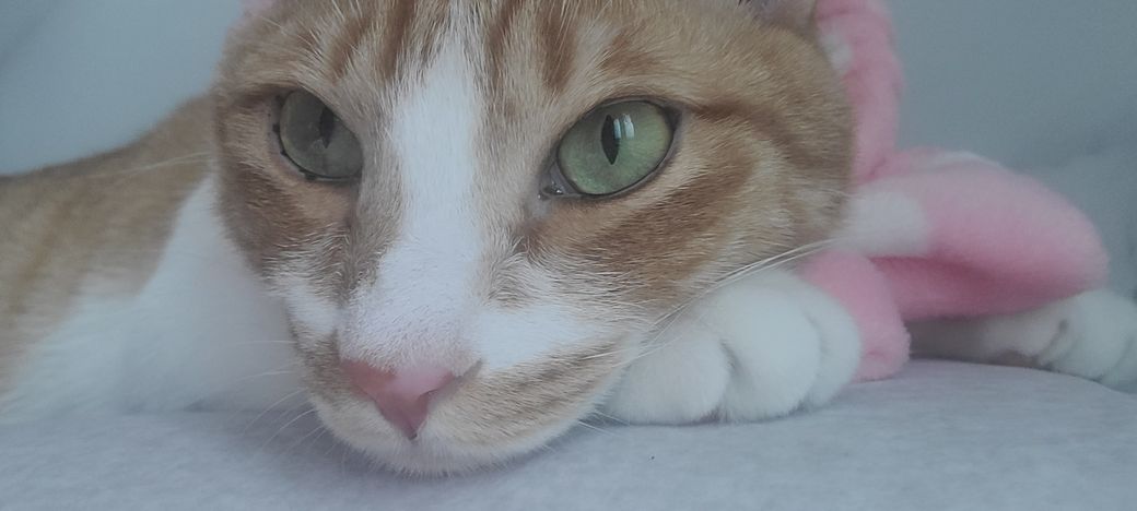 사진상으로 잘 보이진 않지만 눈곱이 껴있다면 동물용 눈세정제나 인공눈물, 생리식염수를 거즈에 충분히 적신뒤에 살살 닦아내주시길 바랍니다.