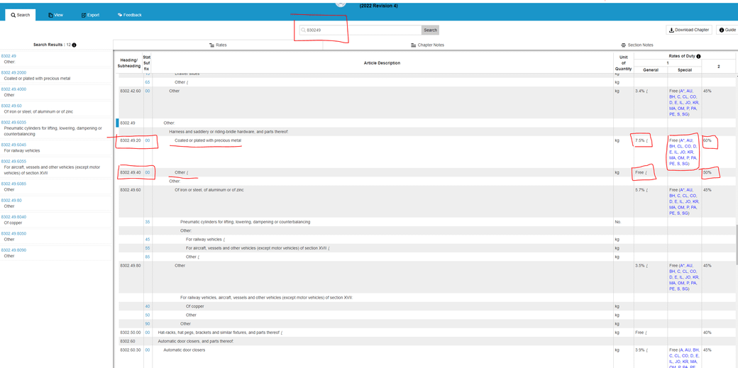 제8302.49-4000호 : 기본세율이 0%(Free), 법정세율은 50%