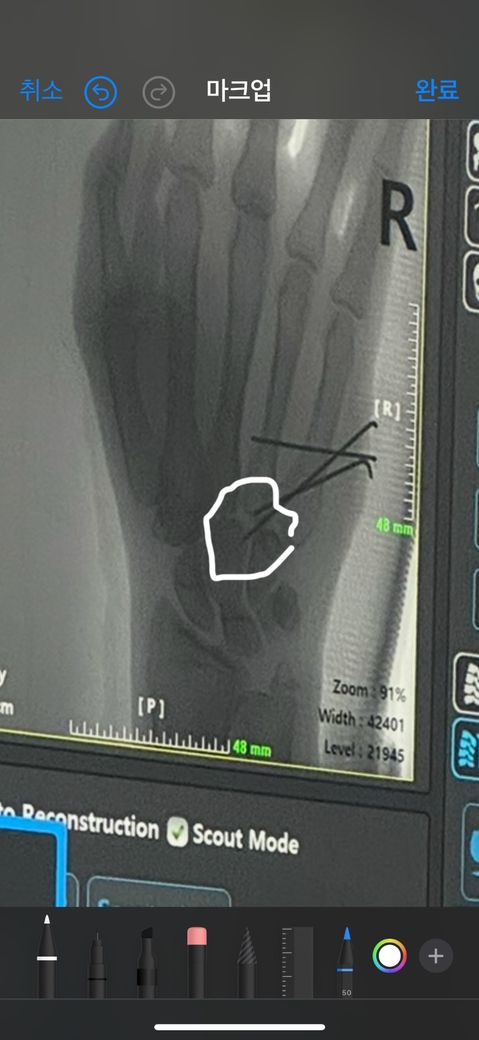 골절로인해 핀고정술을 받은지 3주정도 됬는데 손목통증이 너무 지속되고 심해서병원에 여러번 말해도 약을 더주겠다는 말밖에 없습니디 손목에 움직임이 있을때 저부위가 너무 아프고 손이 엄청 떨리는데 저 핀이 저기까지 박히는게 맞는걸까요??