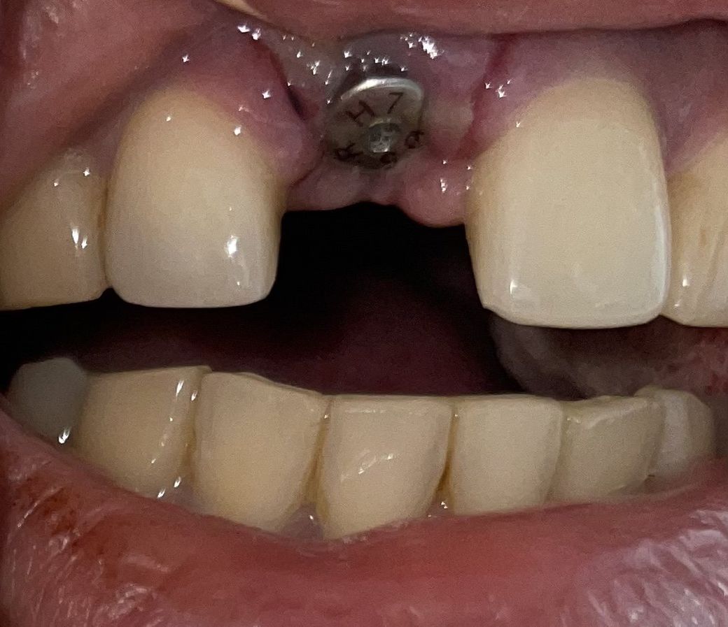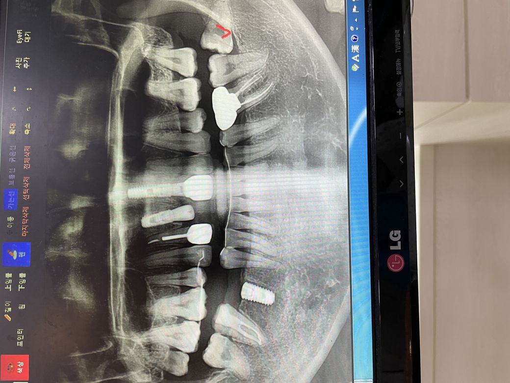 상악 앞니와 우측 아래 어금니2군데 도요ㅣ에 임플란트 픽쳐스 식립 후 오늘 일주일째