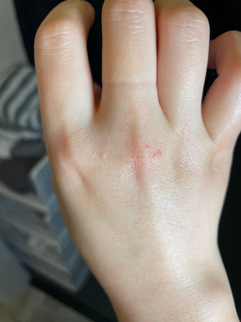 육안 상 관찰만으로 병변을 정확히 진단하기는 어려울 수 있으나, 만일 가렵고 따가운 증상이 지속된다면 의학적으로 '한포진'과 같은 피부성 병변을 의심해 봐야할 수 있습니다. 원인은 불분명하지만 스트레스를 최근에 많이 받거나 손바닥에 다한증이 있는 경우 좀 더 호발하는 것으로 알려져 있으며, 치료로는 이러한 스트레스를 완화시키고 스테로이드 연고 등을 도포하면서 경과가 호전되는지 보는 방법이 있습니다.
