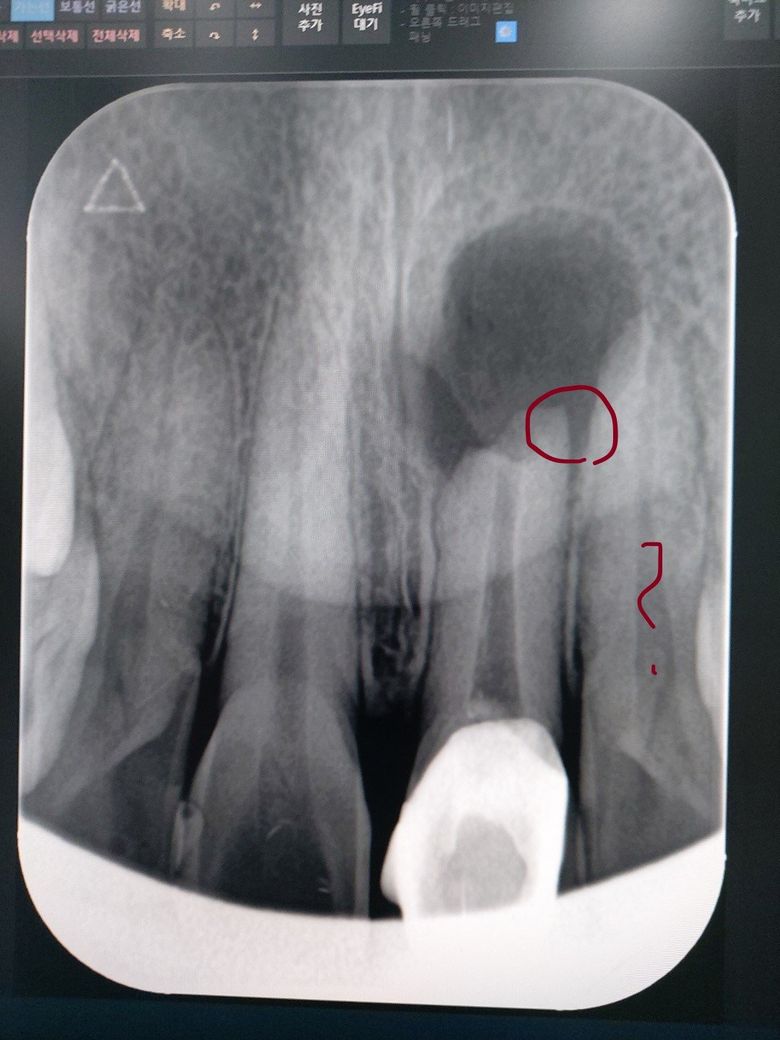 치근단염이 재발해서 좀 커졌는데 옆 이빨의 상태가 궁금합니다