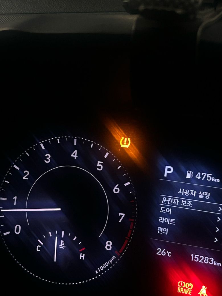 아마 공기압이 나가서 뜨는거 같은데 계기판 돌려보면서 공기압 시스템 찾아보세요 아니면 저게 다른 의미도 있긴한데 거의 공기압입니다.