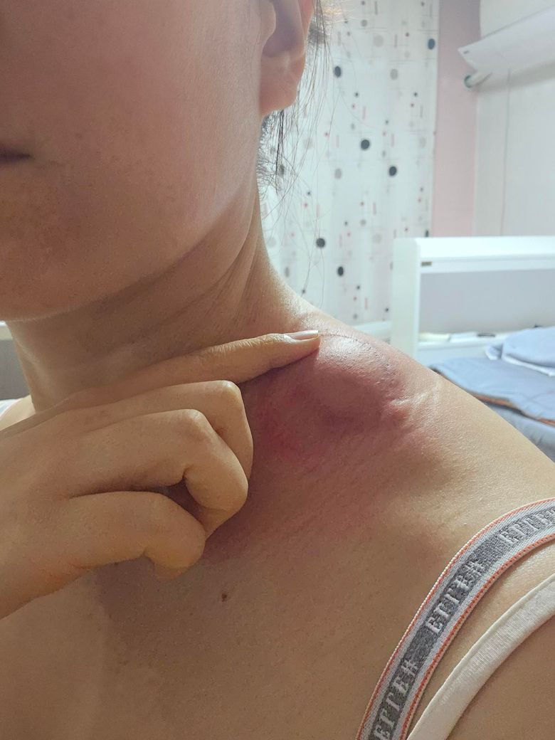 원래 쇄골뼈가 보였었는데...주사 맞고난후로 부풀어오르더니...지방종 일수도 있나요?