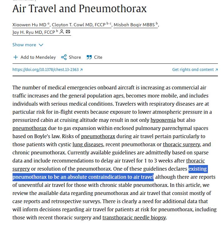 기흉의 경우 비행기를 타시면 악화될 수 있습니다