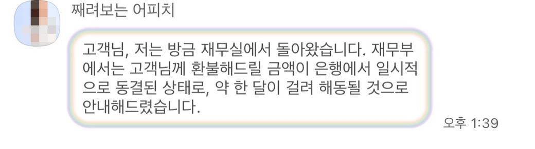 상대방이 일방적으로 환불을 지연하는 것이고 동결 등 사유가 전혀 사실이 아니라면 사기를 의심해봐야 하는 상황으로 보입니다.