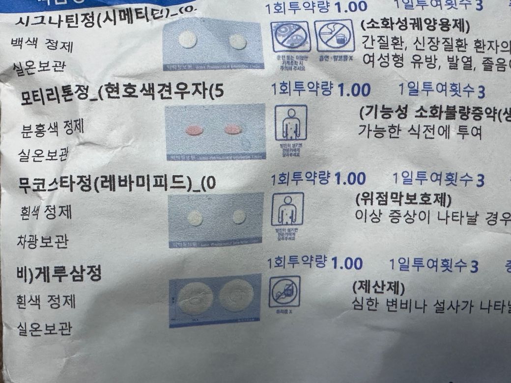 위염때문에 내과에서 약처방받았는데 어지러움증이 있어 보나링에이정 복용하려합니다. 동시복용가능한가요?