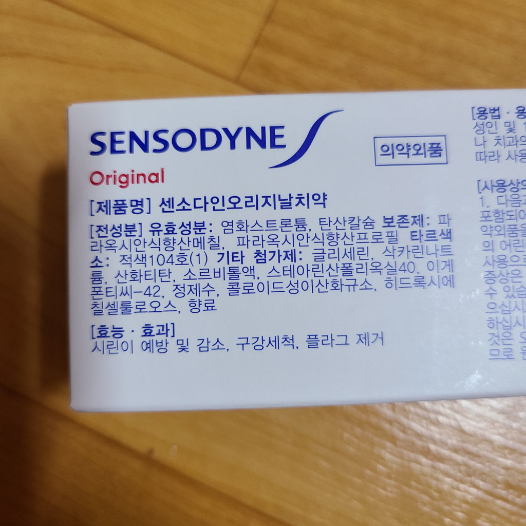 센소다인 오리지널 성분에는 불소가 함유되어 있지 않으니 중간에 불소치약을 사용하는것도 방법일수 있고, 시린증상이 심하다면 불소치약이 함유된 센소다인 치약을 사용하는것도 좋을것 같습니다.