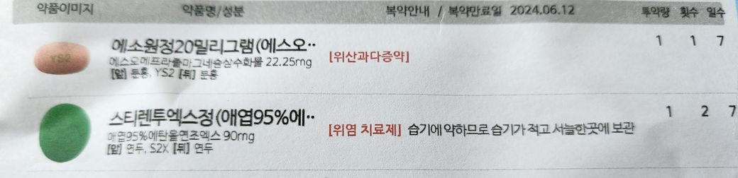 어제 이빈후과에서 역류성식도염 확인하고 위염약들을 받아왔는데 '스티렌투엑스정' 과 '에소원정20밀리그램'을 받아왔습니다