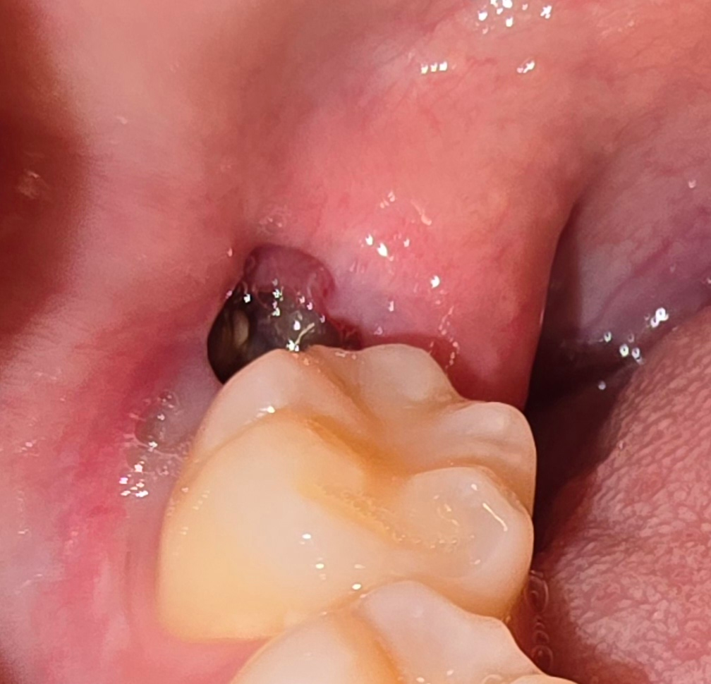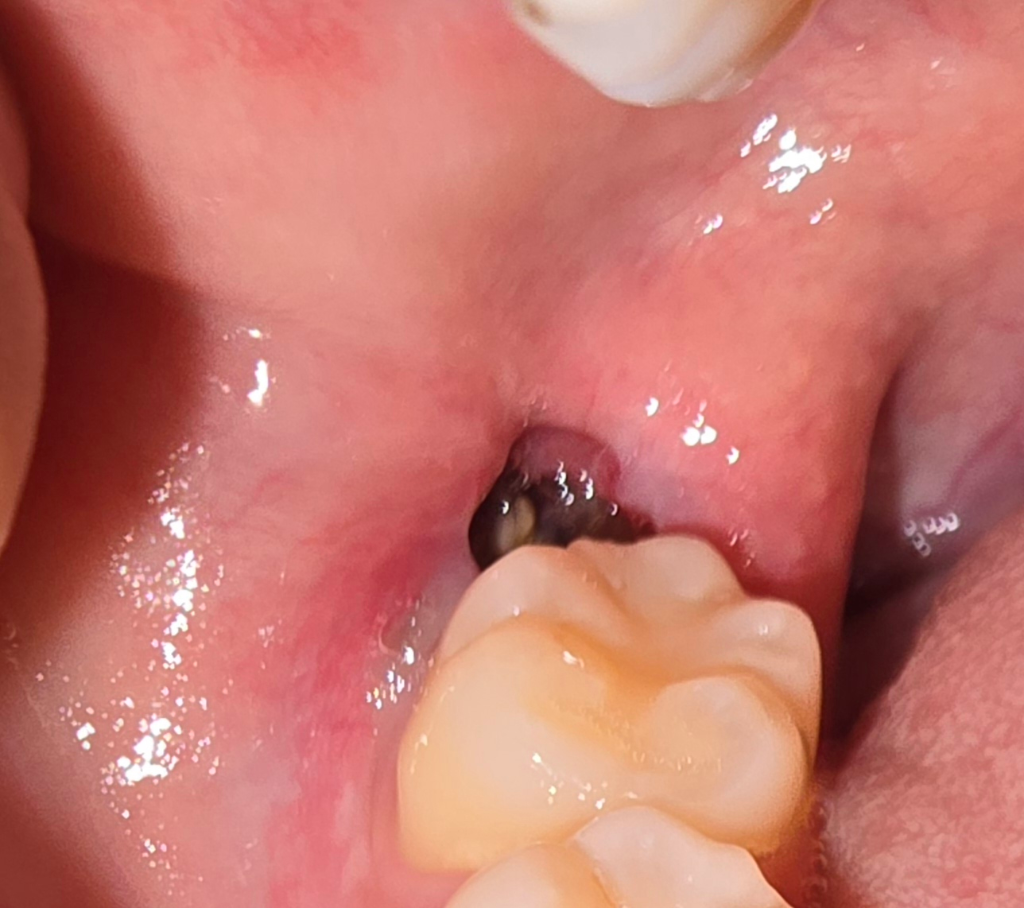 아직 잇몸이 온전히 아물지 않은 상태입니다 초기 치유 후 완전히 잇몸이 아물고 완전히 잇몸뼈가 자라려면 2~3달은 있어야 합니다 그동안 음식물이 껴있지 않도록 칫솔질 및 가글을 부드럽게 잘해주시기 바랍니다