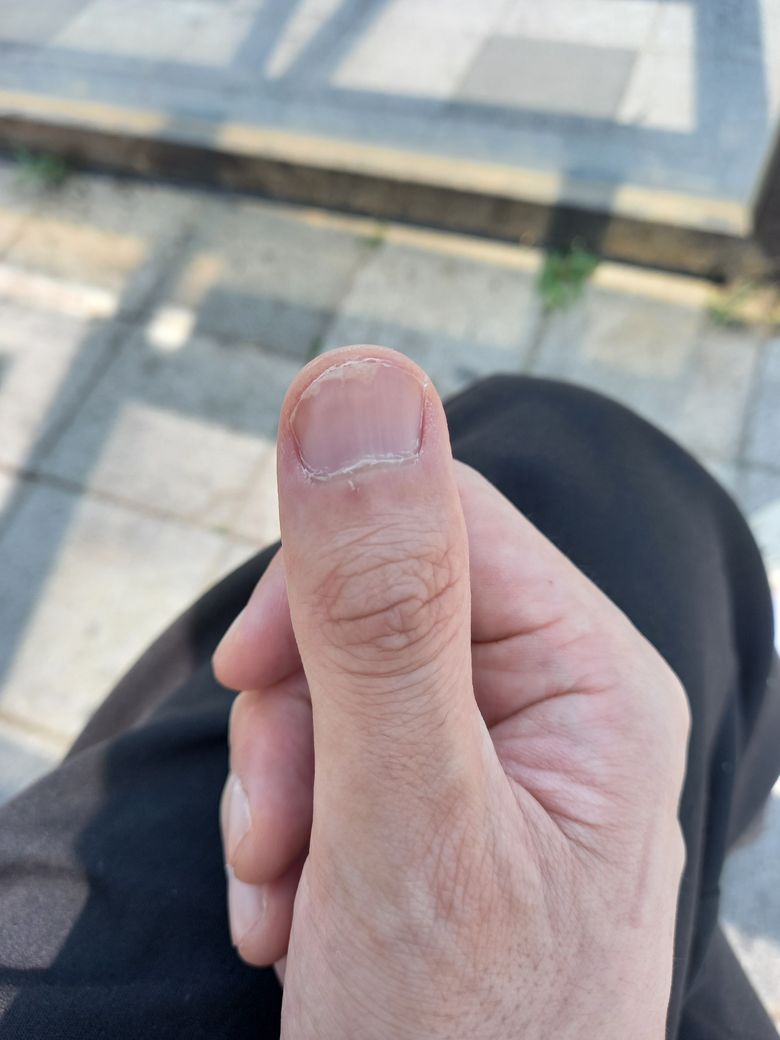 엄지 손톱이 위에가 저런모양으로 하얗게 되어