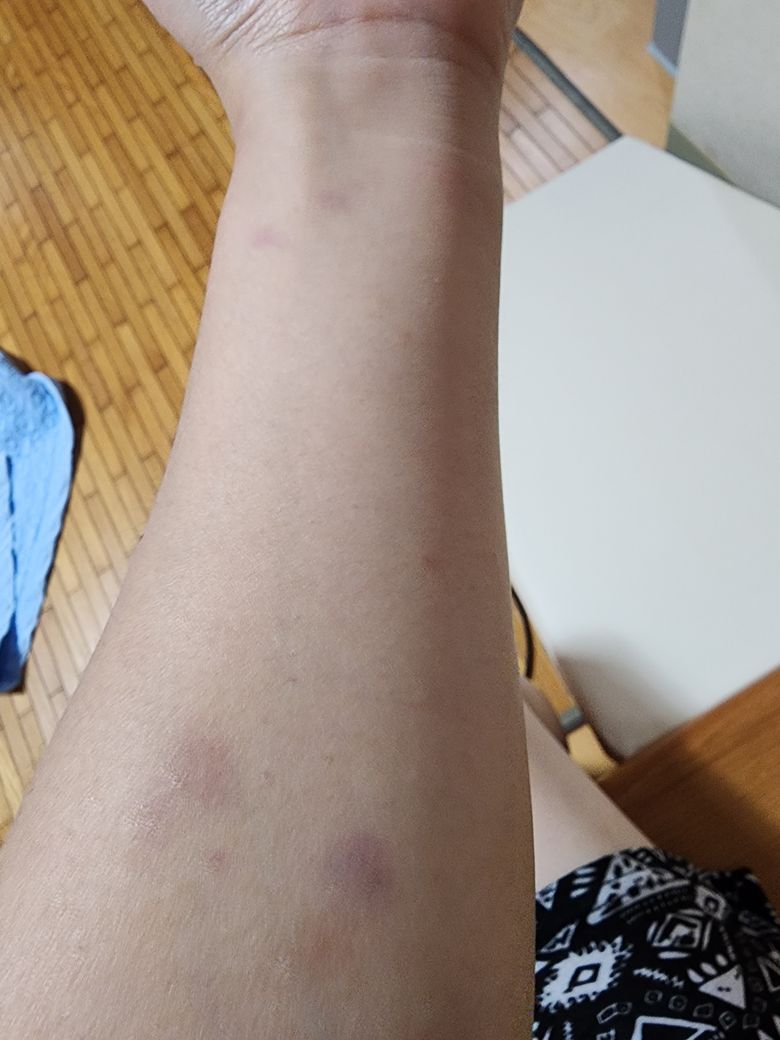 오늘 대학 개강을해서 좀 무거운책을 들었더니 양 팔에 이런 멍이들었는데 왜이런거죠?ㅜ