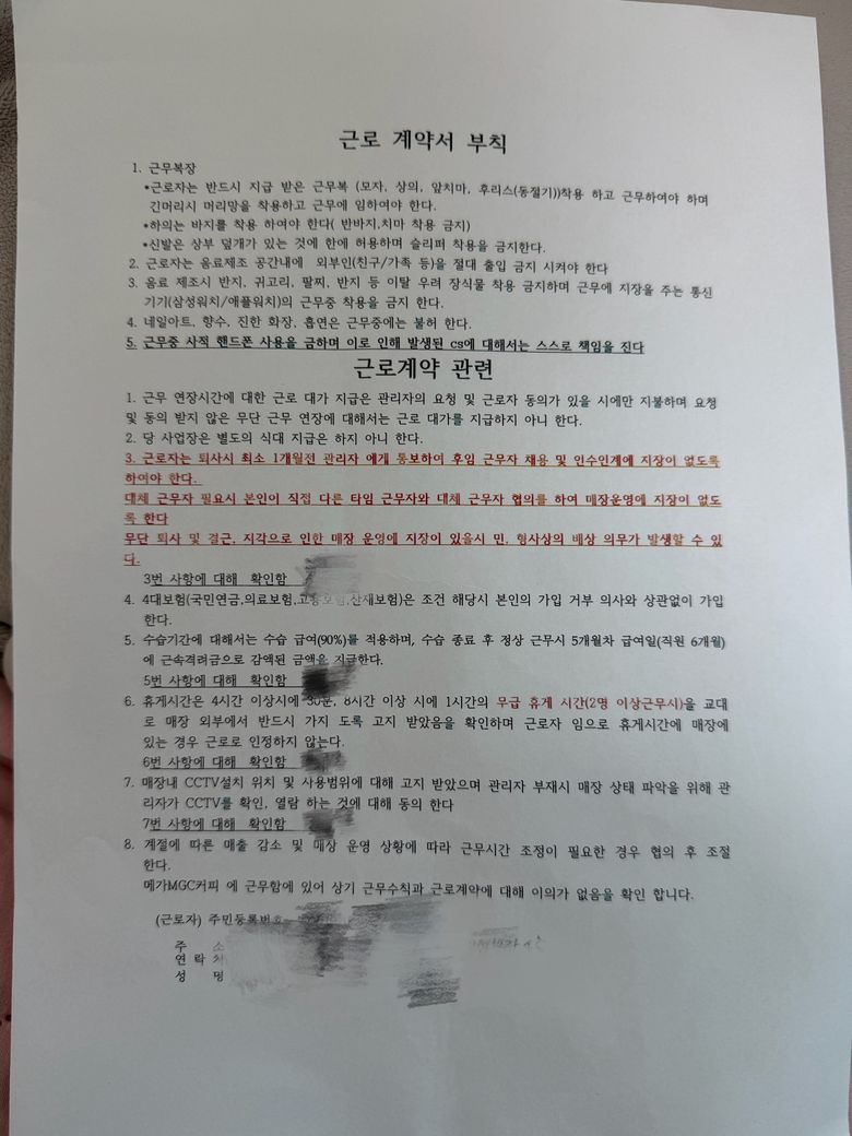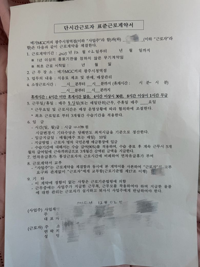 또한 소정 근로 시간을 작성하지 않았는데요, 당시에는 알바생을 한 명 더 구할 지 미정이라는 이유로 작성하지 않았습니다.