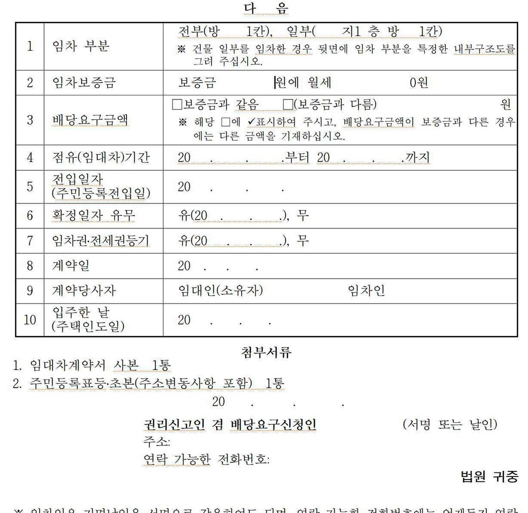 권리신고 및 배당요구신청서 작성법 질문있습니다.