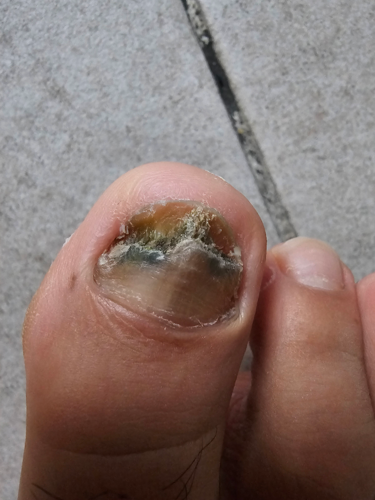 육안상으로 보기에는 흑색종 보다는 무좀과 조갑출혈이 있는 것 같습니다