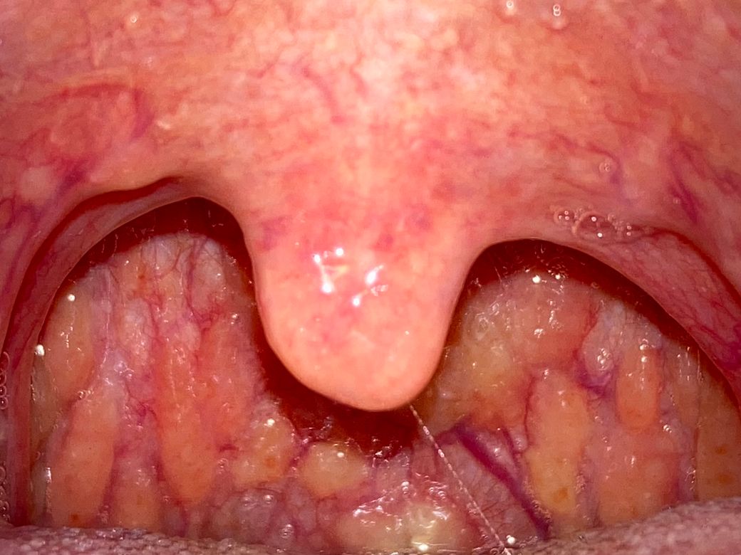 콧물이 목뒤로 넘어가면서 저런 흔적이 보일 수 있습니다 (cobble stone appearance) 콧물이 많이 나오는지 확인하고 필요히 항히스타민제 및 비충혈제거제 복용 고려 할 수 있겠습니다