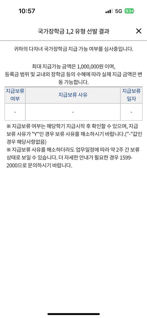 사진과 같이 선발완료가 되었다고 뜨는데 신사결과중이라고 나옵니다. 보류 여부에는 따로 표시가 되지 않았고 이미 학교에는 제 돈으로 등록금을 지불한 상태입니다. 이런 경우에는 장학금이 취소된 것인지 받지 못하는 것인지 만약 받을 수 있는것이라면 기한은 언제쯤인지 궁금합니다. 혹 저번 학년 2학기 성적을 말아먹어 지급이 늦는 것인지도 걱정되긴 합니다..ㅠㅠ 이미 돈을 냈는데 이런 경우에는 학교가 아닌 재 계좌로 돈이 들어오는건지도 부탁드립니다.. 감사합니다