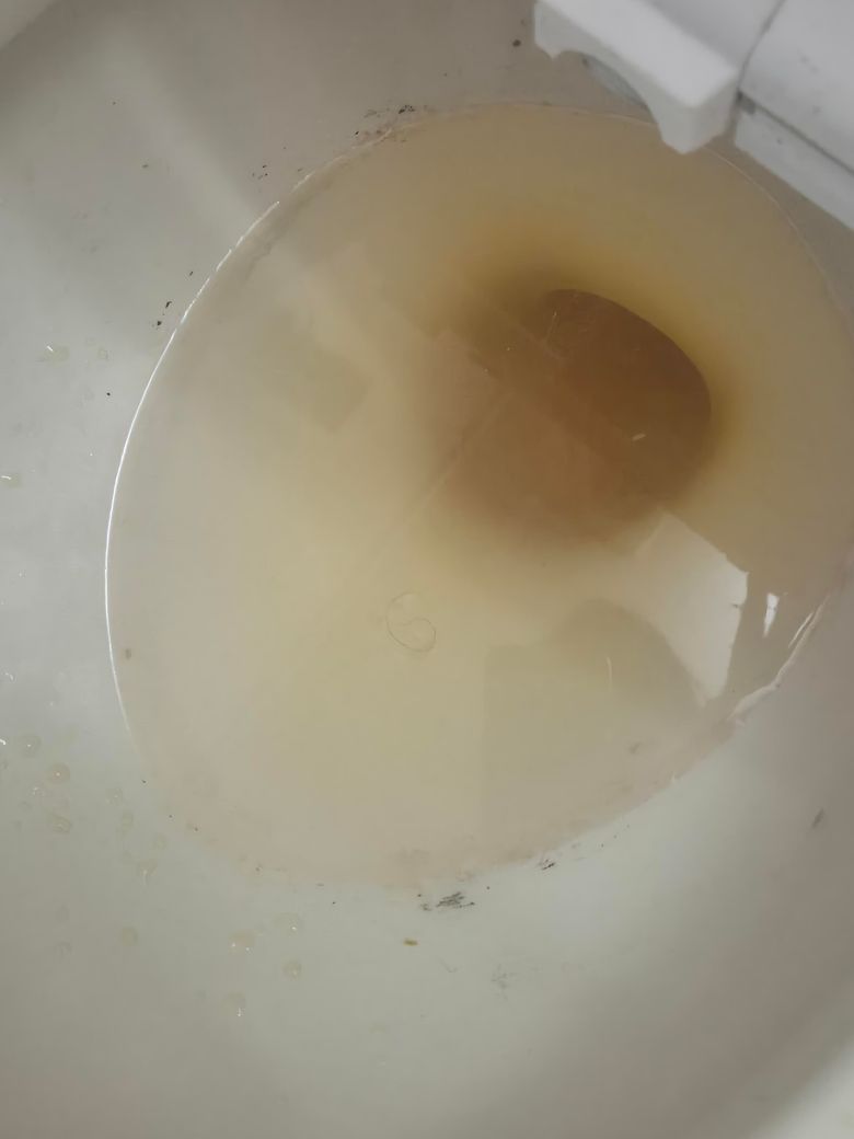 변기물과 섞인 소변 같은 경우엔 별다른 특이점이 보이진 않습니다.