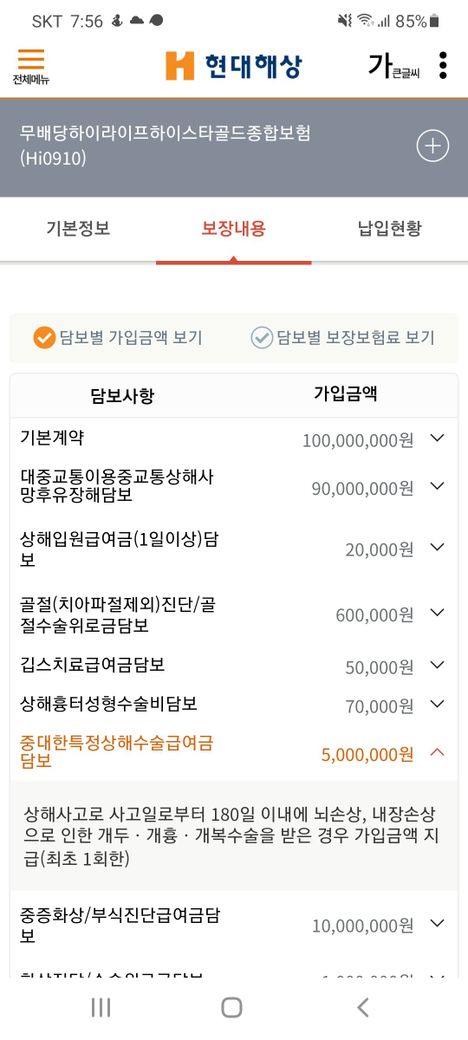 현대해상 중대한특정상해수술급여금 특약에 가입되어있는데 보장받을수 있을까요?