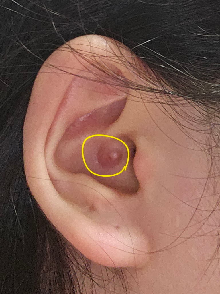 모낭염 등의 피부질환이기는 하지만 귓바퀴 부분이기 때문에 이비인후과에 내원하시어 정확한 진단 및 처방을 받으시는 것을 추천드립니다.