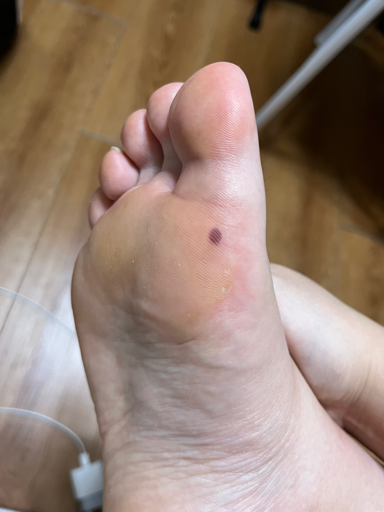 급작스럽게 생긴 점이라면 피하출혈로 인한 증상일 가능성이 높아 보이며 자연적으로 흡수되어 호전이 됩니다.
