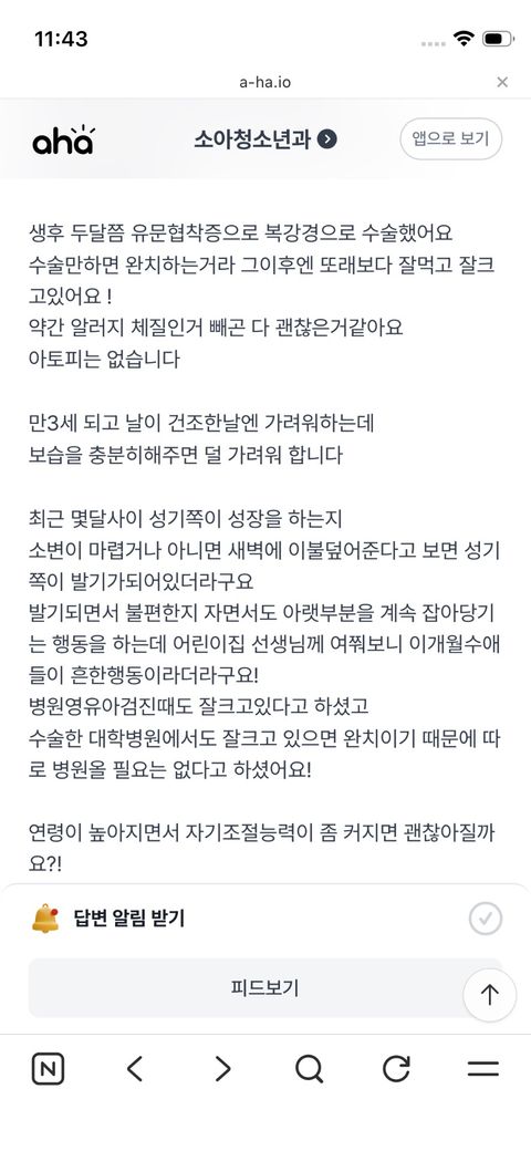 지속적인 발기나 급격한 음경 크기 증가가 없다면 경과 관찰로 충분합니다. 라고 답변주셨는데