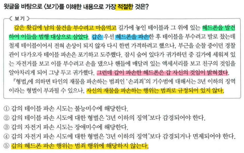 따라서 문제의 경우에는 헤드폰을 파손한 행위가 타인의 물건을 파손하려는 고의를 가졌으나