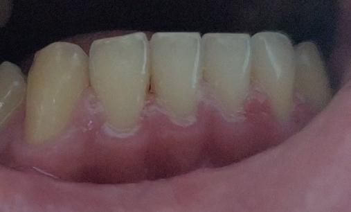 현재사진상으로는 퇴축이 크게 진행된 것으로 보이지 않으며, 평소에 부드러운 칫솔을 사용하고, 너무 강하게 칫솔질을 하지 않도록 권합니다.
