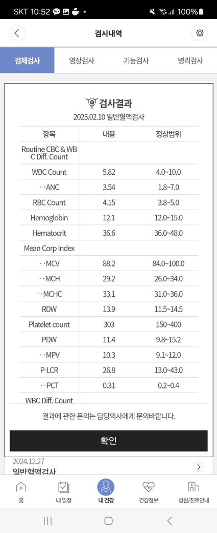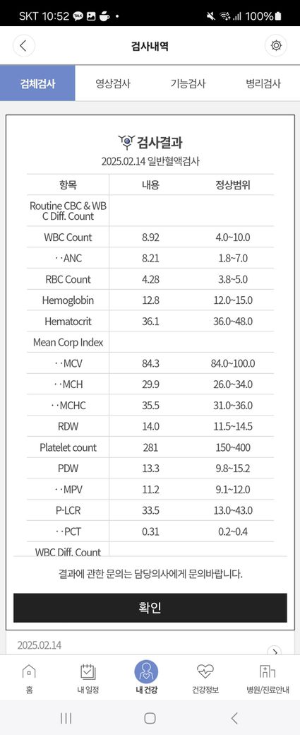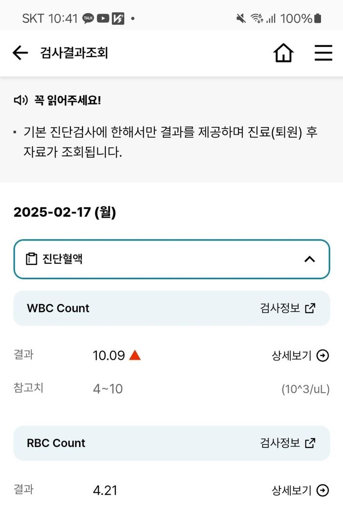 백혈구는 정상 범위라면 크게 의미를 가지지 않습니다