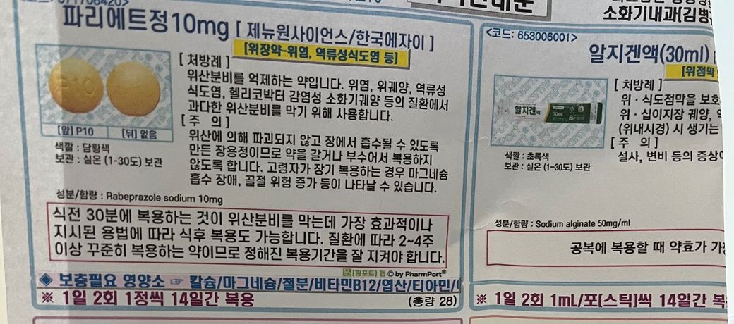 역류성식도염 약으로 받은 파리에트정과 알지겐액을 마그밀과 함께 먹어도 될까요? 파리에트정 1알, 알지겐액 1포이고 마그밀은 2알 먹으려고 해요. 혹시 시간을 두고 먹어야 한다면 몇 시간일까요?