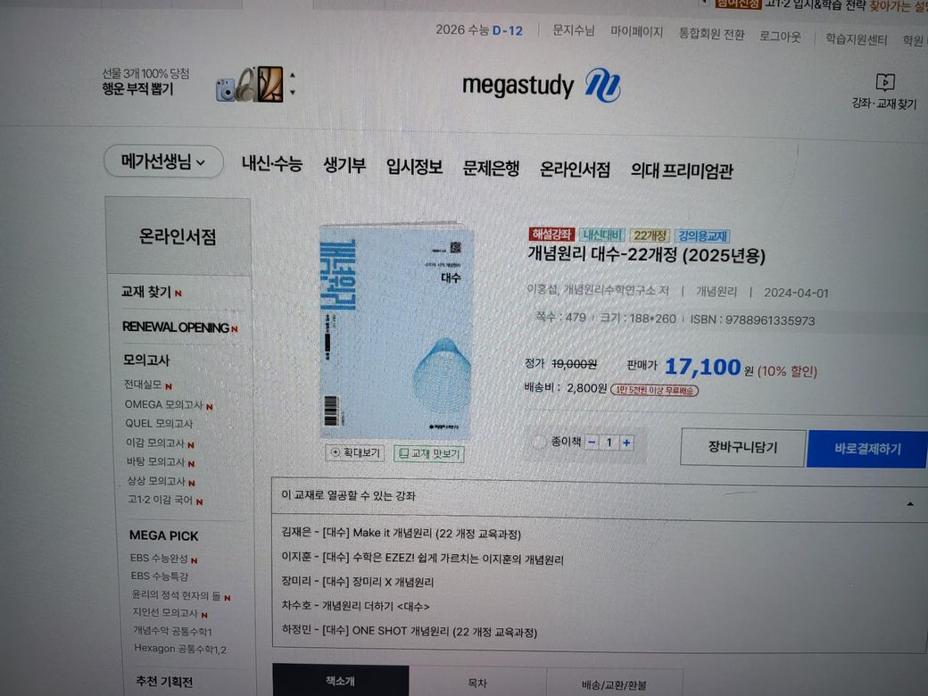 메가스터디 교재 종이책 어떻게 구매하나요