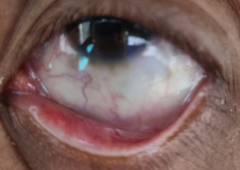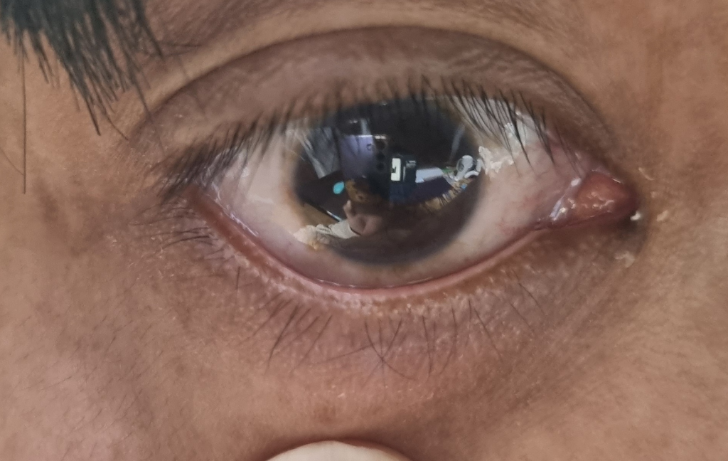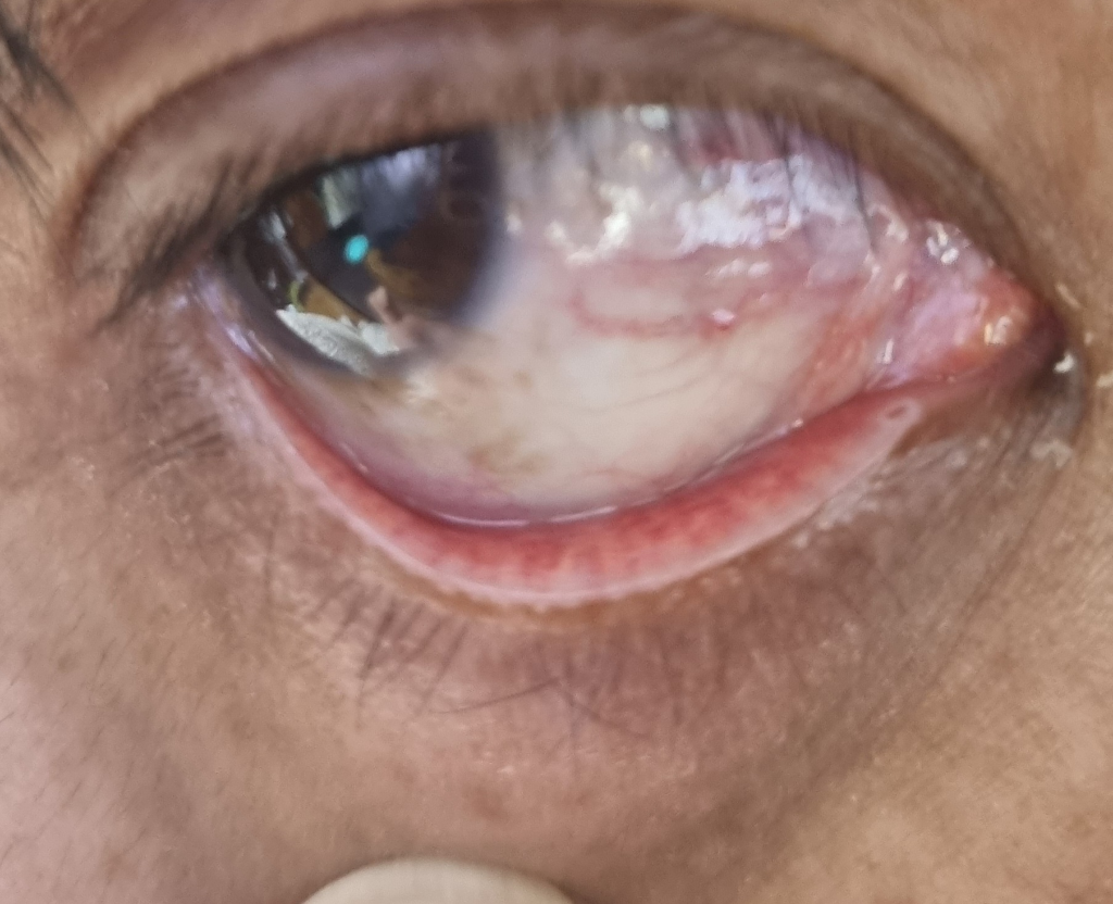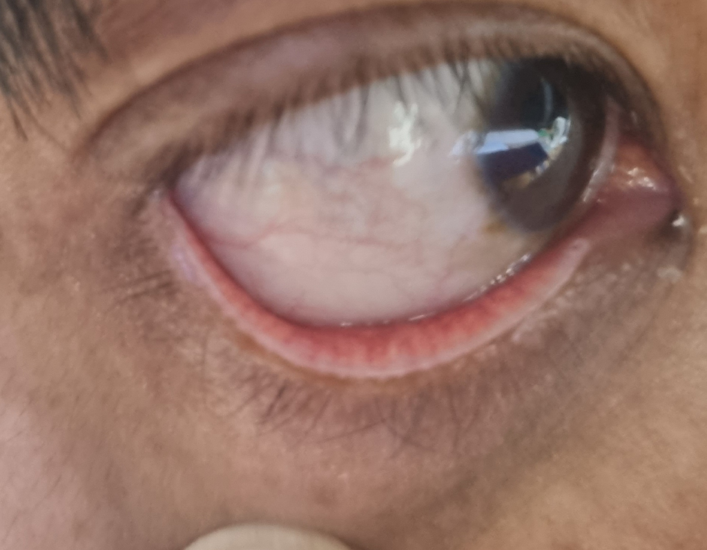 결막염의 증상을 보이고 있는데 주로 세균이나 바이러스에 의한 경우가 많으며