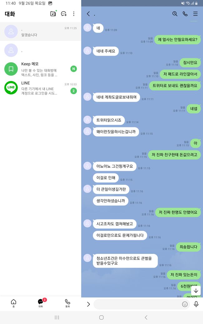 ㅂㅌ알바 하다가 일어난 일인데 실제로 하지는 않았는데 이런 협박은 먼저 메세지 보낸사람한테 제가 보내야하는 경우 아닌가요? 좀 무섭긴한데 진짜로 처벌은 안받을거같은데... 트위터로는 계좌와 얼굴사진만 보냈고 상대방은 조건 및 성매매법으로 신고한다고 보냈습니다